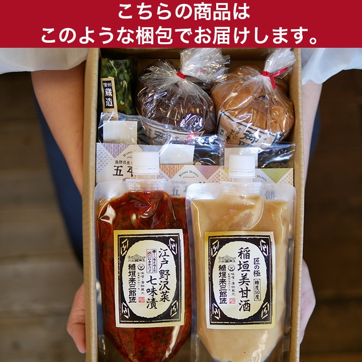 商品名 ■お歳暮・ギフトに!■稲垣来三郎匠14点セット ☆稲垣美甘酒,野沢菜七味漬,五平餅白米,五平餅もちきび,五平餅赤米,こんぶ野沢菜漬(小袋),ねぎだれSP,ひと口胡瓜,中千成完熟300g,中千成糀300g,ねぎみそSP,野沢菜なめ茸,うり粕漬,たまりらっきょう